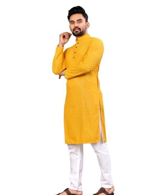 (Kurta Set ) Rayon Fabric Embrodired And Tiki Work Kurta And Pajama Set For Man And Boys