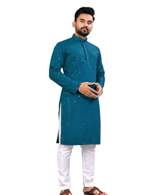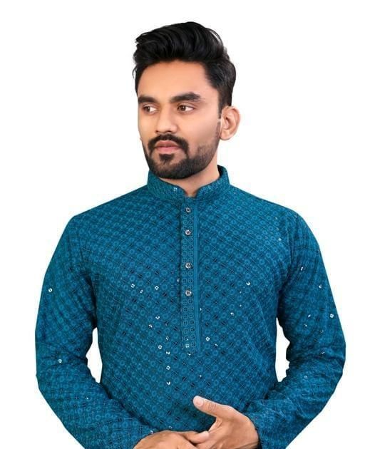 (Kurta Set ) Rayon Fabric Embrodired And Tiki Work Kurta And Pajama Set For Man And Boys