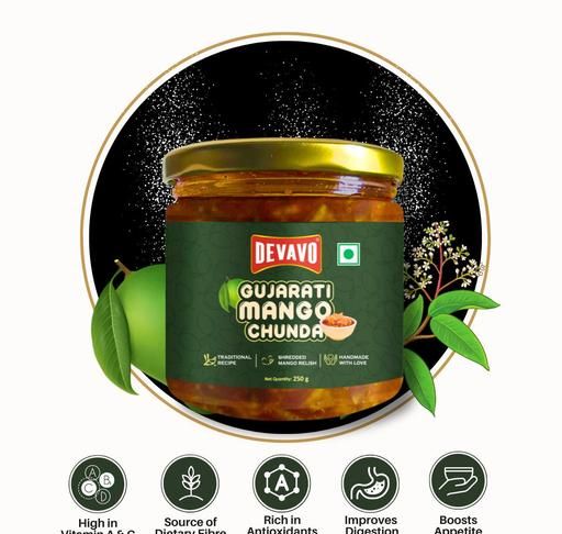 Prepared with authentic Gujarati techniques, this chunda is free from artificial preservatives, allowing you to savor the genuine taste of homemade goodness. Whether enjoyed as a spread on bread, a topping for your favorite snacks, or a flavorful accompaniment to your meals, our Gujarati Mango Chunda brings a touch of traditional sweetness and spice to your table.