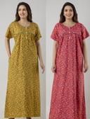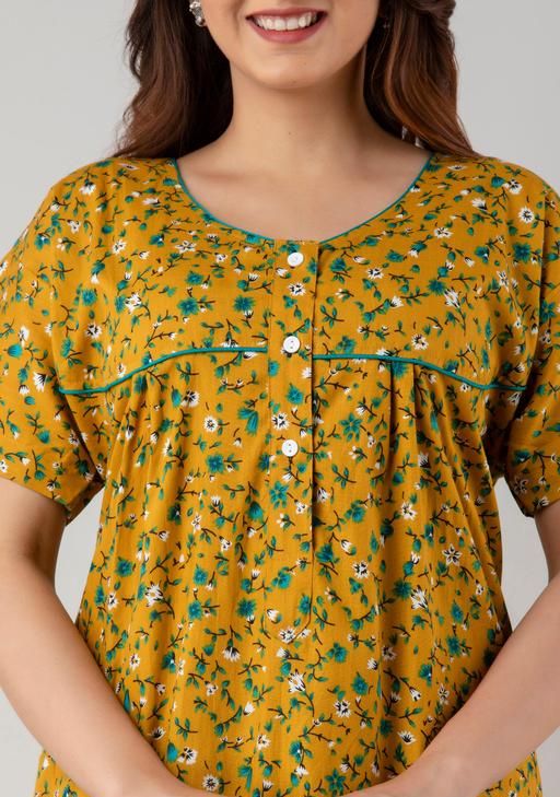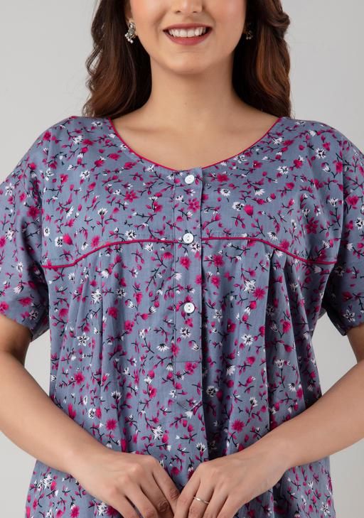 100% COTTON NIGHT WEAR Our cotton nighty gown is designed with your utmost comfort in mind. Made from high-quality cotton fabric, it ensures a soft and breathable feel against your skin. Plus, its elegant and stylish design adds a touch of sophistication to your bedtime attire.