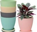 Name: 5 PIS COMBO OF THE Plastic Round Flower Pots for Home Planters, Terrace, Garden Etc | Pack of 05 | Multicolor | Suitable for Home Indoor & Outdoor Gardening Plants