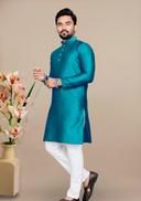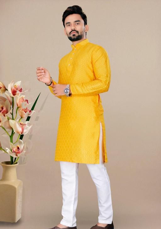 A cotton kurta pajama set for men refers to a coordinated outfit consisting of a kurta (shirt or tunic) and pajama bottoms made entirely from cotton fabric. This traditional Indian ensemble offers comfort, breathability, and a classic look for various occasions.