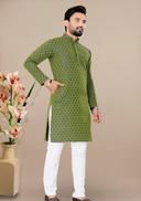 A cotton kurta pajama set for men refers to a coordinated outfit consisting of a kurta (shirt or tunic) and pajama bottoms made entirely from cotton fabric. This traditional Indian ensemble offers comfort, breathability, and a classic look for various occasions.