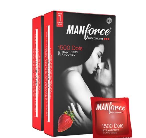 Product Name: MANFORCE 3 in 1 Wild Ribbed Contour Dotted Strawberry Flavor Condoms - 10 Pieces x Pack of 2 Condom (Set of 2 20 Sheets)