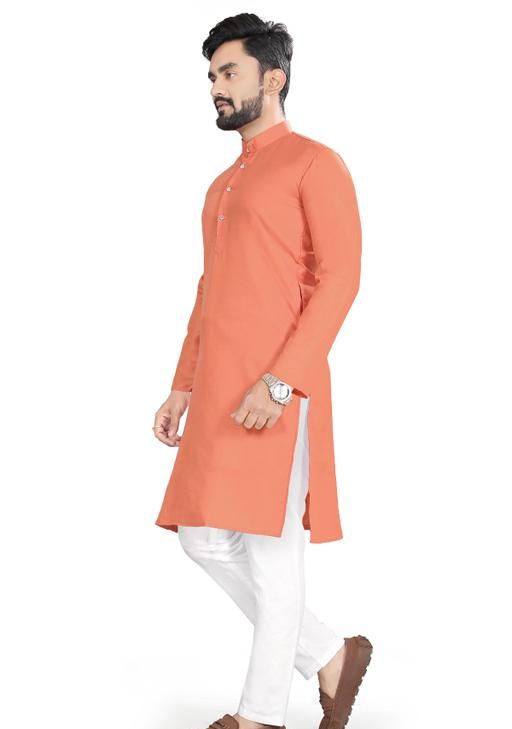 Men's ethnic kurta featuring a Chinese Collar , full sleeves, 2 side pockets and a regular fit. It is crafted from fine cotton. Bottom type is churidar with Nada and zip and 1 hidden pocket