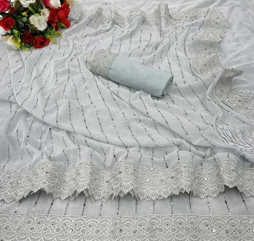 Name: SHIMMER SAREE WITH MIRROR WORK AND CHEMICAL LACE AND DIMOND HAND WORK