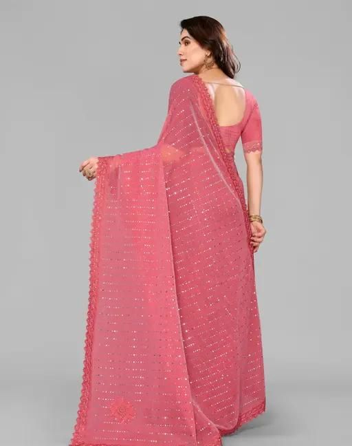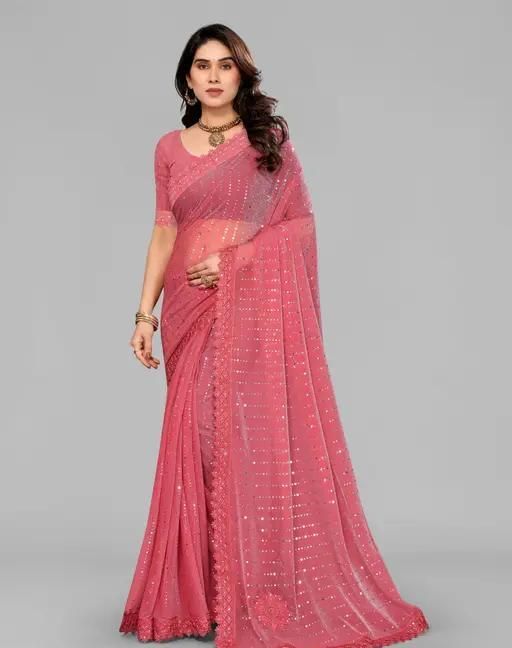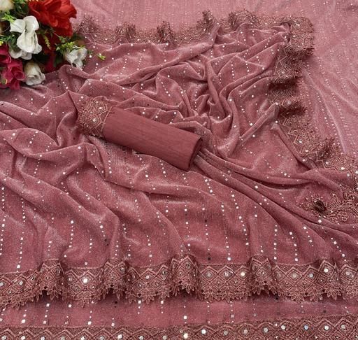 SHIMMER SAREE WITH MIRROR WORK AND CHEMICAL LACE AND DIMOND HAND WORK