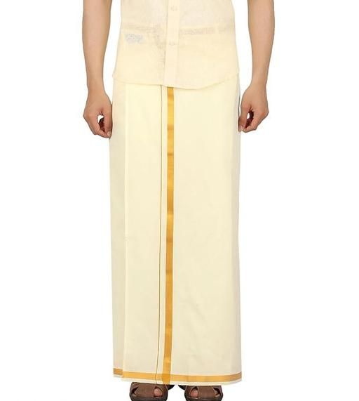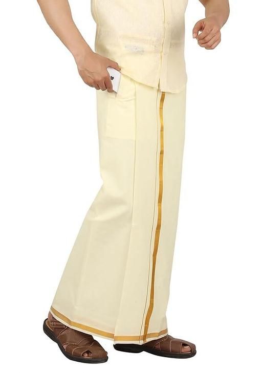 Name: All Size Adjustable Velcro Cream Pocket Dhoti with Gold Jari Border