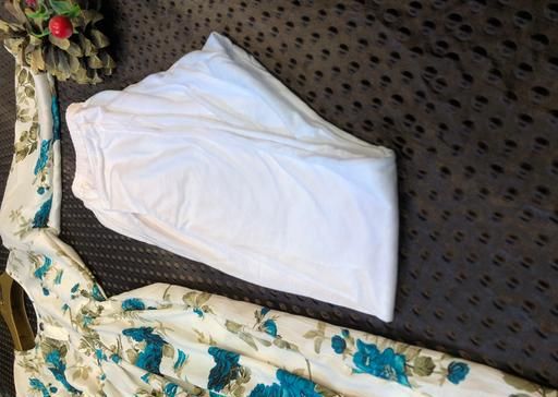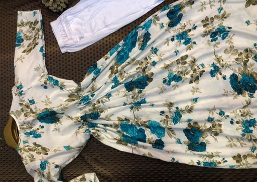 Delta cotton fabric frock with white cotton leggings.