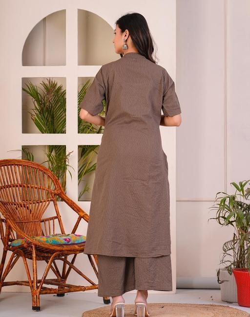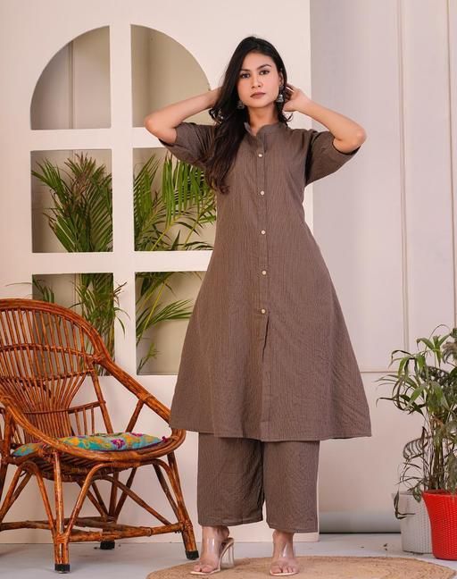 Matching Bottoms: Paired with comfortable, matching bottoms that complement the kurta perfectly, creating a cohesive and stylish ensemble.