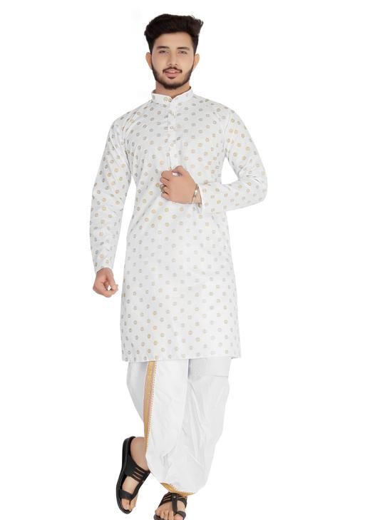 Men Cotton Kurta with Silk type Readymade stitched dhoti suitable for daily use,party,wedding