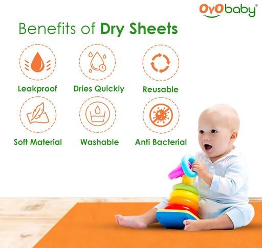 OYO BABY dry sheet is the best waterproof material that absorbs 8 times its weight. It provides a diaper-free night and rash-free skin to your baby. Provides a cozy, smooth, and soft feeling. Protects the bed from Bed Wetting. It protects the baby from rashes.