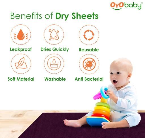 OYO BABY dry sheet is the best waterproof material that absorbs 8 times its weight. It provides a diaper-free night and rash-free skin to your baby. Provides a cozy, smooth, and soft feeling. Protects the bed from Bed Wetting. It protects the baby from rashes.