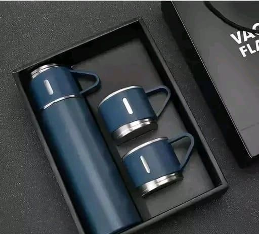 Name: Owqust Electric Stainless Steel Water Kettle and How water Dispenser With Steel Vacuum Flask Set with 3 Steel Cups Combo(Pack of 2)Silver