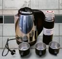 Owqust Electric Stainless Steel Water Kettle and How water Dispenser With Steel Vacuum Flask Set with 3 Steel Cups Combo(Pack of 2)Silver
