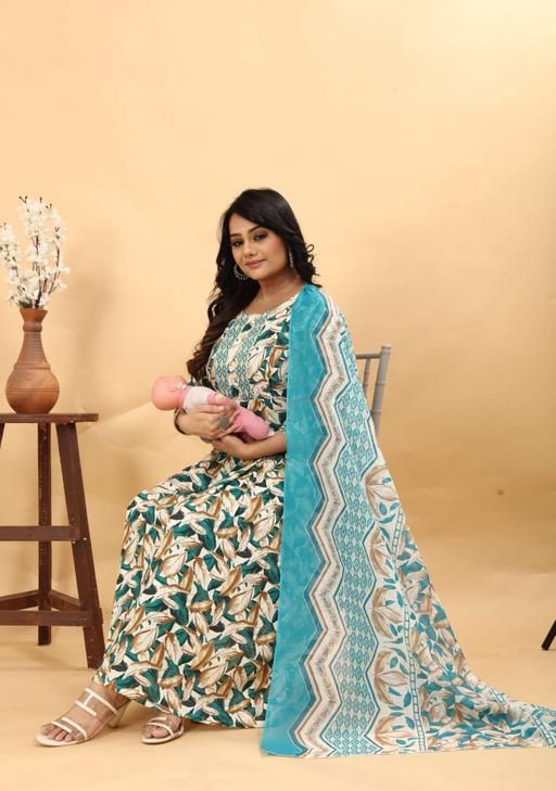 This Breastfeeding Anarkali Nursing Kurta Set is very comfortable for every mother to be. Made with super soft & comfortable fabrics, this maternity Kurta Set is a must have for every mom to be.