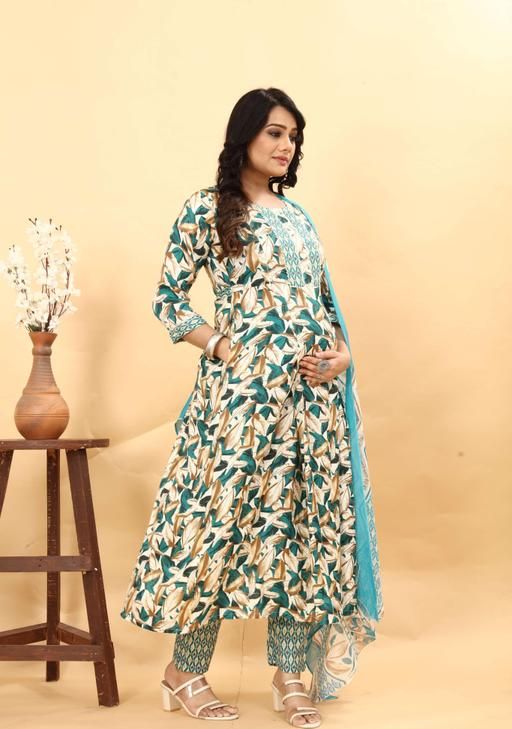 Name: Women Viscose Rayon Fit & Fliar Maternity and Feeding Kurta Pant and Dupatta Set with Invisible Zip