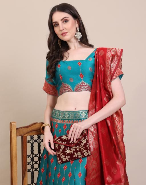 Name: Art Silk Embellished Semi-Stitched Lehenga with Unstitched Blouse and Dupatta