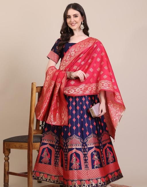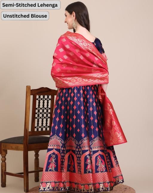 Name: Art Silk Embellished Semi-Stitched Lehenga with Unstitched Blouse and Embellished Dupatta