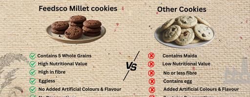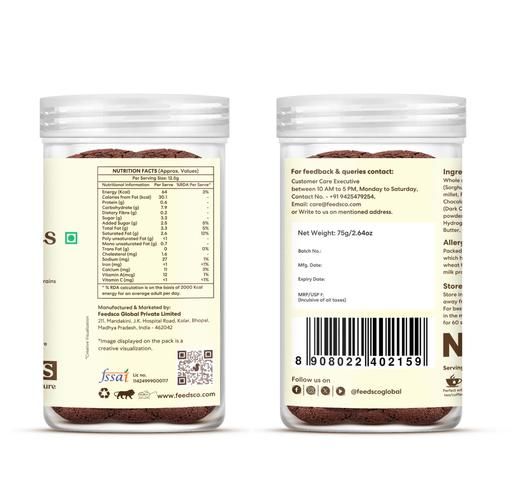 Enjoy a delicious and guilt-free snacking experience with Feedsco Choco Chip Millet Cookies. Made with wholesome millets and natural sweetness, these cookies are a perfect healthy alternative to regular biscuits. They are eggless and made without maida, making them safe and suitable for both kids and adults.