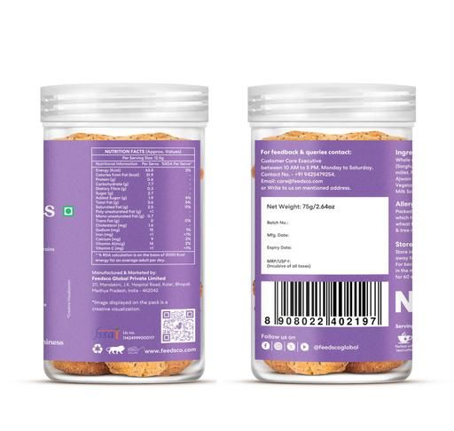 Enjoy healthy snacking without compromising on taste with Feedsco Ajwain Millet Cookies. Made from nutritious millets and flavored with the goodness of ajwain, these cookies are light, crunchy, and easy to digest. They are eggless and made without maida, making them a safe and wholesome choice for the entire family.