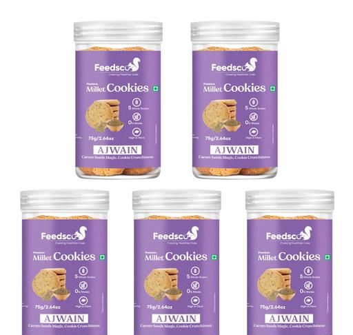 Name: Ajwain Millet Cookies | Healthy & Tasty Snack | Eggless, No Maida | High Fiber & Protein | Kids & Adults (75g x 5 Pack)