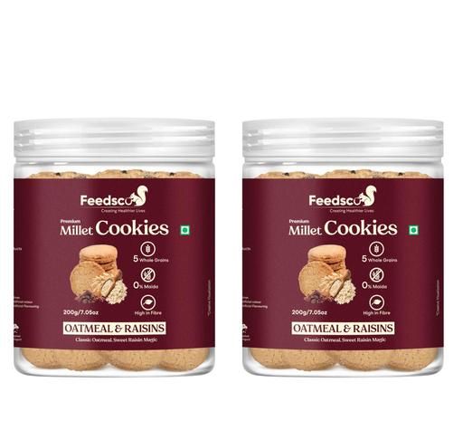 Name: Oatmeal & Raisins Millet Cookies | Multigrain Handmade Healthy Biscuits | Eggless, No Maida | No Preservatives | Kids & Adults (200g x 2 Pack)