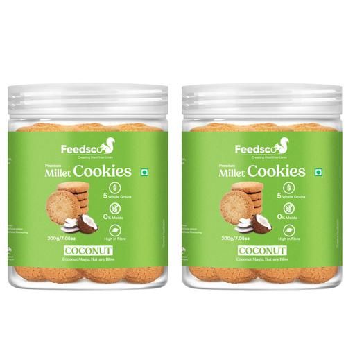 Discover the wholesome goodness of Feedsco Millet Coconut Cookies — the perfect healthy snack for kids and adults!