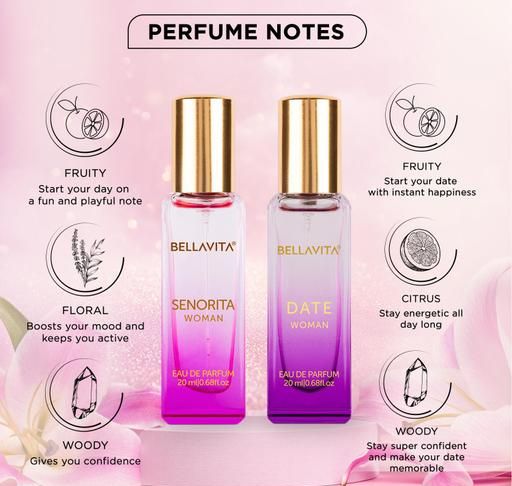Product Name: Bella Vita Luxury Women's DATE+SENORITA Woman Perfume Gift Combo for Women 40 ML (Pack of 2 Items 20ML Each)
