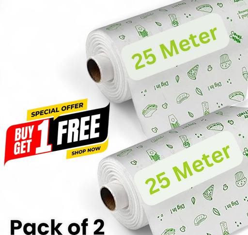 Imvelo Food Wrap Paper Roll - 25 + 25 Mtr Free, Non-Stick, Oil Proof Foil Butter Paper Roll, Reheatable Foil Paper for Roti Paper, Chapati, & More, Wrapping Paper for Food, Parchment Paper Roll