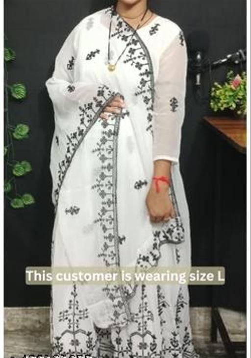 L (Bust Size: 40 in, Waist Size: 34 in, Length Size: 52.5 in, Shoulder Size: 15 in, Bottom Waist Size: 12 in, Bottom Hip Size: 12 in, Bottom Length Size: 12 in, Duppatta Length Size: 2.15 in)