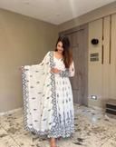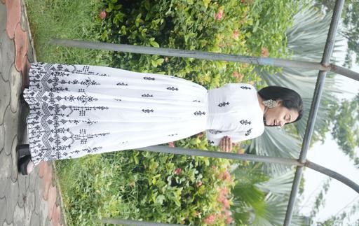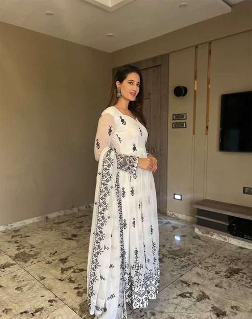 Miss clothing women's gown with dupatta set printed soft fabric with floral embroidery work V-neck styel with long sleeves for lowest price party and ethnic casual wear dress maxi,anarkali,solid,formal,solid,bollywood styel long gwon,white-black colour mirror work kurtas with dupatta set at india's best online shopping store wedding wear styelish all pourpose funcational trending dress