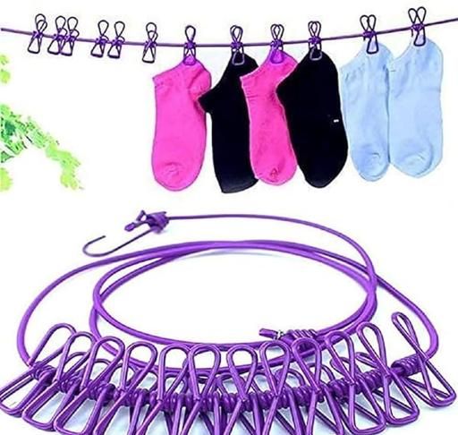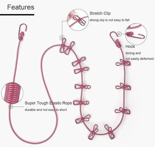 Name: Pack Of 2 Multicolor Cloth Rope for Cloth Drying Rope with Hooks Rope for Drying Clothes Hanging Rope with 12 Clips for Clothes Drying Wire for Clothes Drying Clothes Rope for Drying with Hooks Cloth line Rope