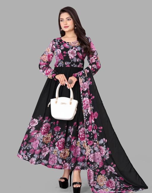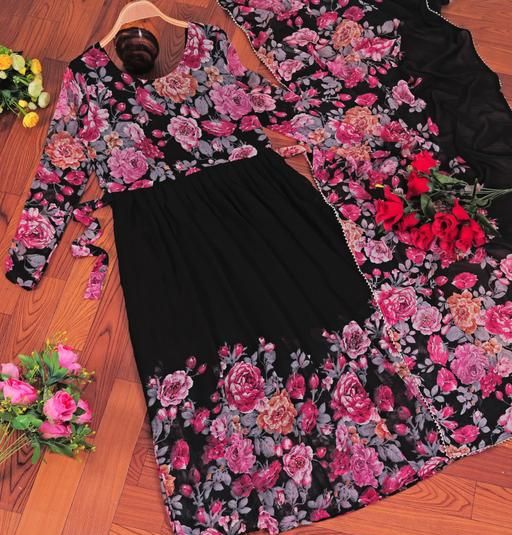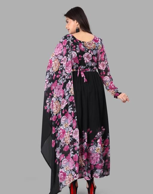 Name: Black Floral colour Georgette Fabric Digitally printed Gown and Duppata Set for woman (NO BOTTOM)