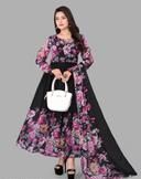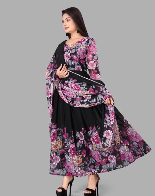 Black Floral colour Georgette Fabric Digitally printed Gown and Duppata Set for woman (NO BOTTOM)