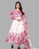 White Floral colour Georgette Fabric Digitally printed Gown and Duppata Set for woman (NO BOTTOM)
