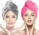 Cotton Bolls Ultra-Soft Microfiber Hair Towel – Quick-Dry & Lightweight (2-Pack)-Pink & Grey