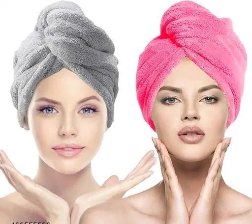 Name: Cotton Bolls Ultra-Soft Microfiber Hair Towel – Quick-Dry & Lightweight (2-Pack)-Pink & Grey
