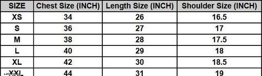 XXL (Chest Size: 44 in, Length Size: 31 in)