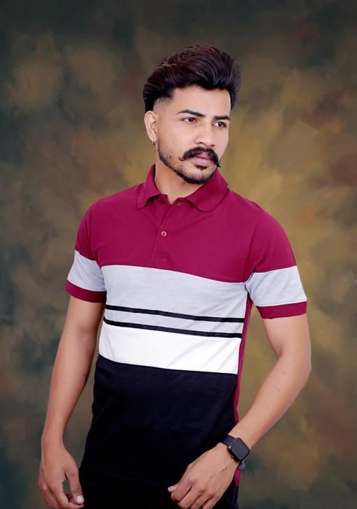 Men Striped Polo Neck Cotton Blend Multicolor T-Shirt | polo shirts | striped shirts | Cotton T shirt | striped T shirt