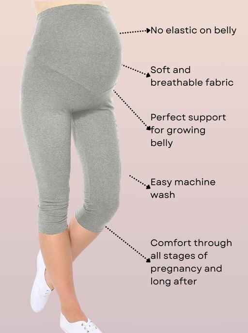 ULTIMATE COMFORT & SUPPORT: Soft, stretchy fabric supports belly and eases back pain 24x7. ||| COTTON LYCRA FABRIC: Breathable, snug fit with excellent stretch and shape retention. ||| HIGH WAIST & BELLY SUPPORT: Over-belly design reduces back pain and adjusts to your shape. ||| SAFE, STRETCHABLE: Toxin-free, ultra-soft fabric ||| MAXIMUM FLEXIBILITY: Four-way stretch ||| MULTI USAGE: It can also be wore post pregnancy, as casual wear, night wear, sports wear and gym wear. ||| LENGTH: 3/4 Capri Maternity Leggings