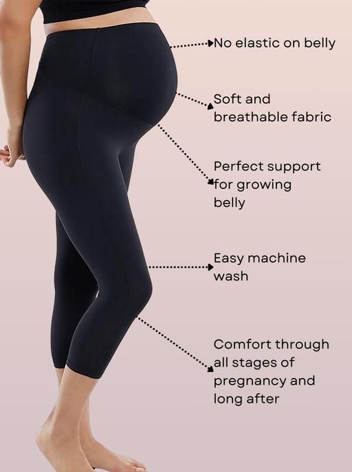 ULTIMATE COMFORT & SUPPORT: Soft, stretchy fabric supports belly and eases back pain 24x7. ||| COTTON LYCRA FABRIC: Breathable, snug fit with excellent stretch and shape retention. ||| HIGH WAIST & BELLY SUPPORT: Over-belly design reduces back pain and adjusts to your shape. ||| SAFE, STRETCHABLE: Toxin-free, ultra-soft fabric ||| MAXIMUM FLEXIBILITY: Four-way stretch ||| MULTI USAGE: It can also be wore post pregnancy, as casual wear, night wear, sports wear and gym wear. ||| LENGTH: 3/4 Capri Maternity Leggings