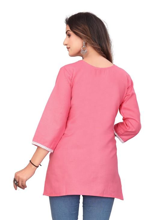 A short kurta for women with embroidery work and full sleeves made from cotton fabric is a stylish and comfortable traditional attire.