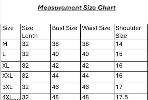 XXXL (Bust Size: 46 in, Size Length: 32 in)