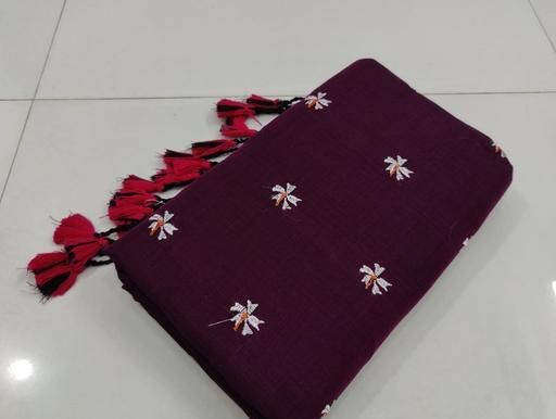 GOOD QUALITY PURE SOFT SHEULI EMBROIDERY KHADI COTTON SAREE WITH RUNNING BLOUSE