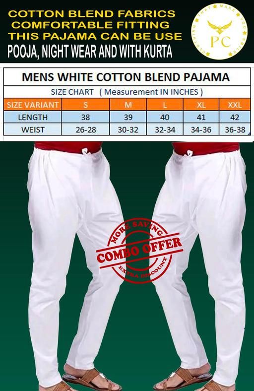 Name: White Pajama Combo for Men's . Cotton blend Pyjama Relaxing Boys and Gents