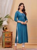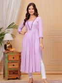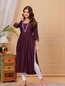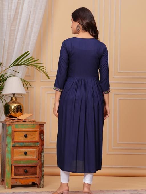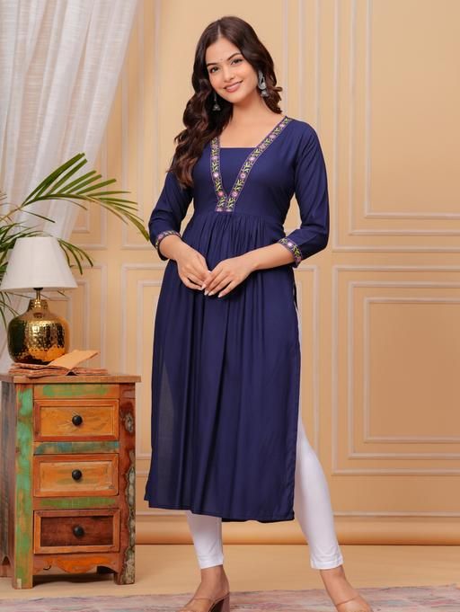 Step into a world of grace with this Rayon Anarkali Kurti, a creation that blends comfort with style. The rich embroidery on the neckline and the three-quarter sleeves make it a perfect ensemble for special occasions or everyday elegance. Available in sizes S to XXXL, each kurti is tailored to flatter your silhouette with a bust size ranging from 36 to 46 inches and a consistent length of 46 inches. The deep maroon hue is versatile and timeless, ensuring that you stand out with understated sophistication. Proudly manufactured in India, this kurti is a single piece of artistry that celebrates the fusion of traditional embroidery with modern design. Discover the elegance of traditional Indian fashion with this beautifully printed Rayon kurta from TANTANATAN TEXTILE. Featuring a charming combination of floral and geometric patterns, this kurta is tailored with three-quarter sleeves and comes in a range of sizes to ensure a perfect fit for everyone. The kurta's length is a modest 46 inches, making it suitable for various occasions, from casual outings to festive celebrations. The soft and breathable Rayon fabric ensures comfort throughout the day, while the kurta's design reflects the latest fashion trends at great prices. Proudly made in India, this single-piece kurta is a must-have addition to your ethnic wardrobe.