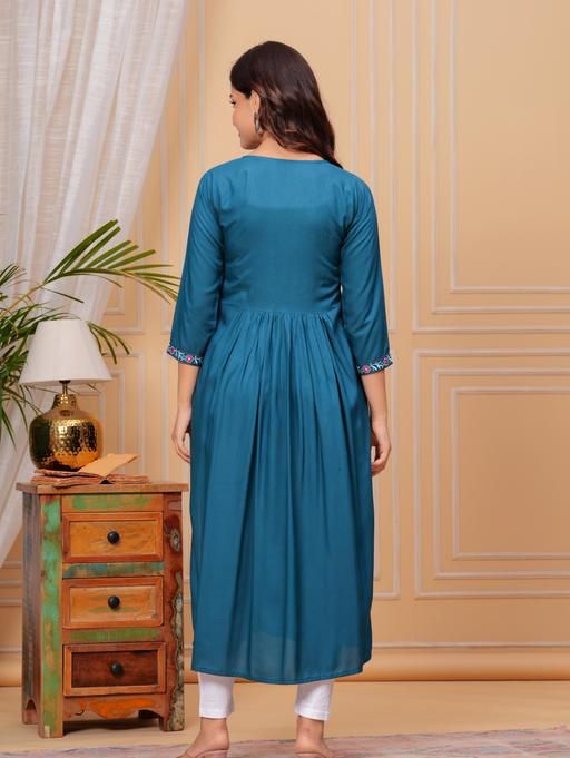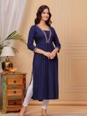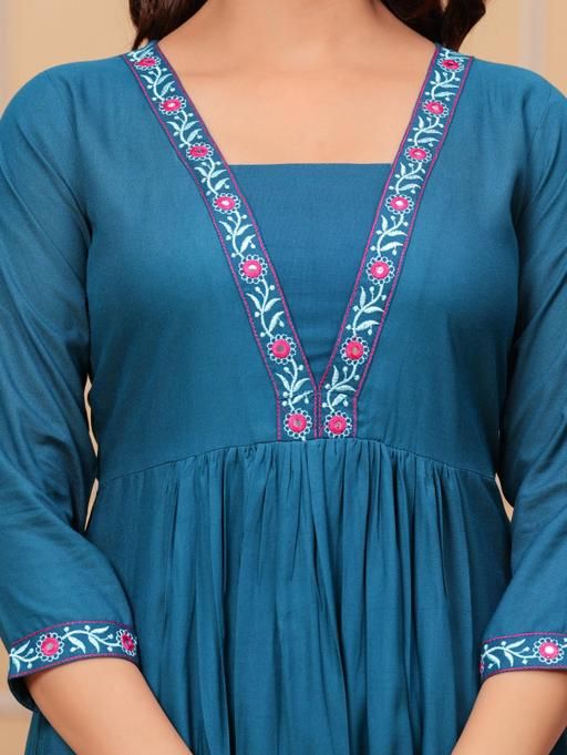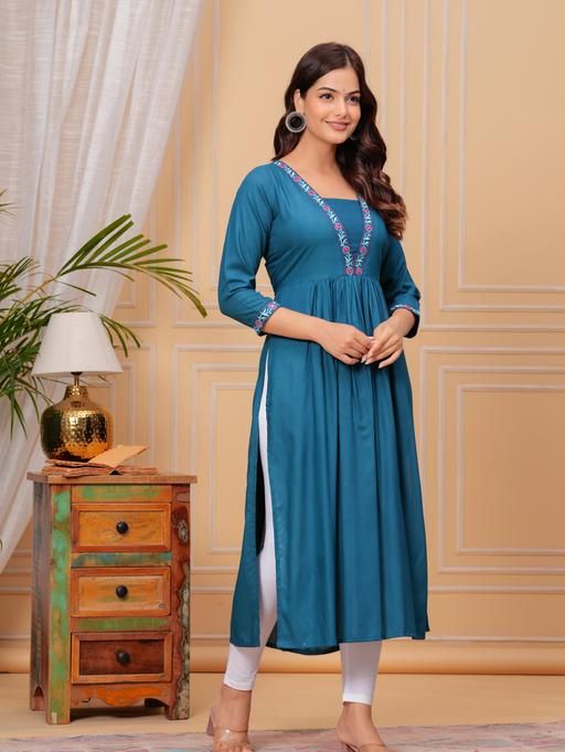 Step into a world of grace with this Rayon Anarkali Kurti, a creation that blends comfort with style. The rich embroidery on the neckline and the three-quarter sleeves make it a perfect ensemble for special occasions or everyday elegance. Available in sizes S to XXXL, each kurti is tailored to flatter your silhouette with a bust size ranging from 36 to 46 inches and a consistent length of 46 inches. The deep maroon hue is versatile and timeless, ensuring that you stand out with understated sophistication. Proudly manufactured in India, this kurti is a single piece of artistry that celebrates the fusion of traditional embroidery with modern design. Discover the elegance of traditional Indian fashion with this beautifully printed Rayon kurta from TANTANATAN TEXTILE. Featuring a charming combination of floral and geometric patterns, this kurta is tailored with three-quarter sleeves and comes in a range of sizes to ensure a perfect fit for everyone. The kurta's length is a modest 46 inches, making it suitable for various occasions, from casual outings to festive celebrations. The soft and breathable Rayon fabric ensures comfort throughout the day, while the kurta's design reflects the latest fashion trends at great prices. Proudly made in India, this single-piece kurta is a must-have addition to your ethnic wardrobe.