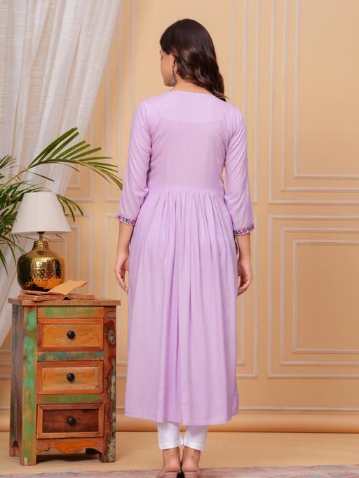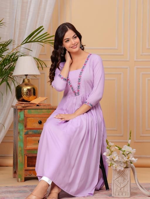 Step into a world of grace with this Rayon Anarkali Kurti, a creation that blends comfort with style. The rich embroidery on the neckline and the three-quarter sleeves make it a perfect ensemble for special occasions or everyday elegance. Available in sizes S to XXXL, each kurti is tailored to flatter your silhouette with a bust size ranging from 36 to 46 inches and a consistent length of 46 inches. The deep maroon hue is versatile and timeless, ensuring that you stand out with understated sophistication. Proudly manufactured in India, this kurti is a single piece of artistry that celebrates the fusion of traditional embroidery with modern design. Discover the elegance of traditional Indian fashion with this beautifully printed Rayon kurta from TANTANATAN TEXTILE. Featuring a charming combination of floral and geometric patterns, this kurta is tailored with three-quarter sleeves and comes in a range of sizes to ensure a perfect fit for everyone. The kurta's length is a modest 46 inches, making it suitable for various occasions, from casual outings to festive celebrations. The soft and breathable Rayon fabric ensures comfort throughout the day, while the kurta's design reflects the latest fashion trends at great prices. Proudly made in India, this single-piece kurta is a must-have addition to your ethnic wardrobe.
