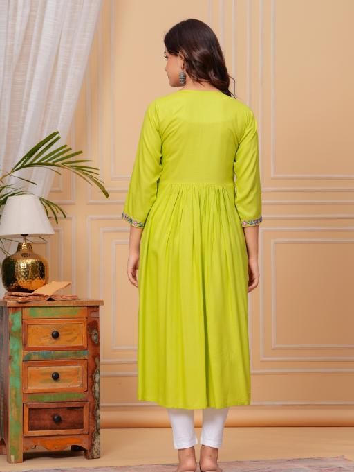 Step into a world of grace with this Rayon Anarkali Kurti, a creation that blends comfort with style. The rich embroidery on the neckline and the three-quarter sleeves make it a perfect ensemble for special occasions or everyday elegance. Available in sizes S to XXXL, each kurti is tailored to flatter your silhouette with a bust size ranging from 36 to 46 inches and a consistent length of 46 inches. The deep maroon hue is versatile and timeless, ensuring that you stand out with understated sophistication. Proudly manufactured in India, this kurti is a single piece of artistry that celebrates the fusion of traditional embroidery with modern design. Discover the elegance of traditional Indian fashion with this beautifully printed Rayon kurta from TANTANATAN TEXTILE. Featuring a charming combination of floral and geometric patterns, this kurta is tailored with three-quarter sleeves and comes in a range of sizes to ensure a perfect fit for everyone. The kurta's length is a modest 46 inches, making it suitable for various occasions, from casual outings to festive celebrations. The soft and breathable Rayon fabric ensures comfort throughout the day, while the kurta's design reflects the latest fashion trends at great prices. Proudly made in India, this single-piece kurta is a must-have addition to your ethnic wardrobe.